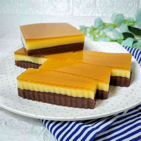 Puding lapis, dengan lapisan-lapisan warna-warni yang cantik dan tekstur lembut